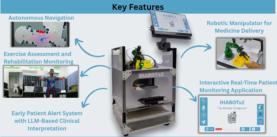 The objective of the IHABOTv2 project is to design and develop an intelligent autonomous hospital assistance robot capable of performing continuous patient monitoring, early clinical risk detection, and assistive healthcare tasks in real hospital environments. The system aims to reduce nurse workload and minimize unnecessary human exposure to infectious conditions by integrating autonomous navigation, multi-parameter vital sign monitoring, and intelligent data interpretation. A key goal of the project is to deliver an affordable, deployable, and reliable robotic solution suitable for resource-constrained hospitals, while supporting timely clinical decision-making and improving patient safety.